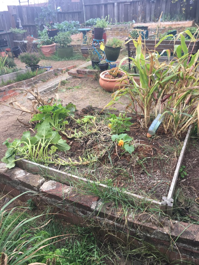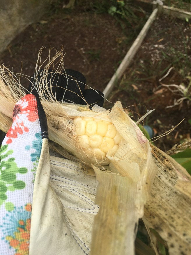 I cut away all the awful mildewed leaves and yes- it’s time to say goodbye to the corn.