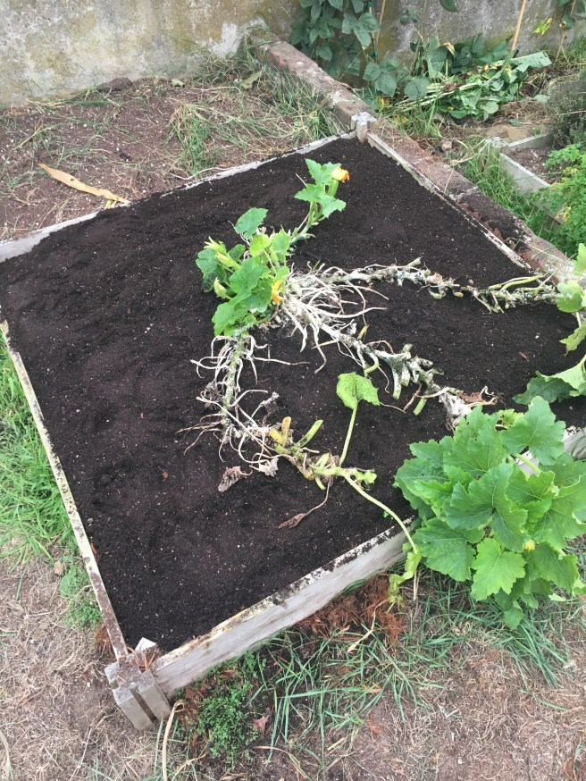 So the bed was cleared and the vines were trimmed. As you can see there is still a lot of healthy plant left.