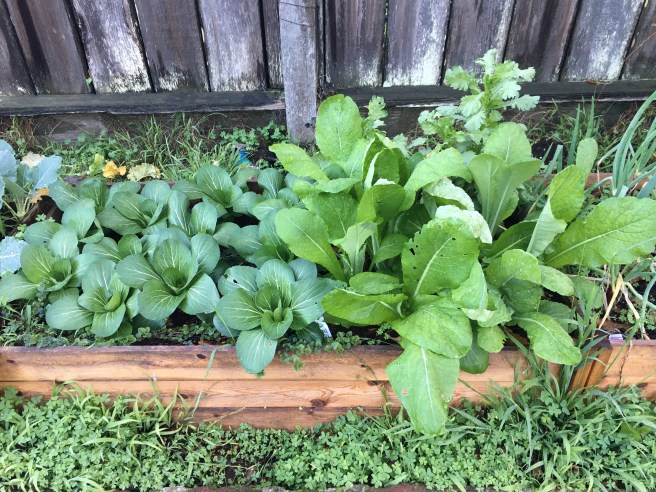 The Japanese vegetable bed is very successful. Of course if I’d planned it as a Japanese vegetable bed the tatsoi/koji from next door would be here in place of the Bok Choy, but I don’t really plan anything I just put stuff where I have space.