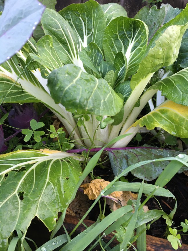The win win Bok Choy may be a slow bolter but in winter that doesn’t matter. What does matter is how it’s been reacting to all the moisture and the way it’s been reacting is poorly. All the white stemmed Bok Choy are a soggy mess! I’ve been picking and eating the best ones but it looks like my favorite for spring planting is a dud for winter planting. It’s also really depleted, but some fertilizer fixed that.