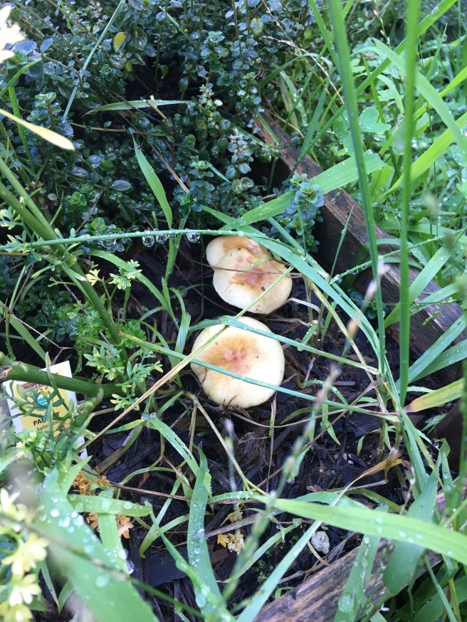 It’s just wall to wall shrooms in the shade herb bed- but that’s not the only fungus among us.