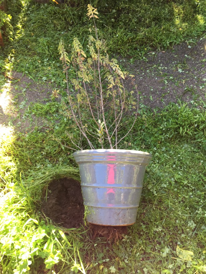 The first sign today was going to be interesting was the discovery that my lemon verbena needed to be re-potted. The roots are coming out the bottom! It was very fun ripping it up off the ground. I’m tempted to get another rainy gray pot from work- it’s my favorite color. Don’t be distracted by the fact that the leaves have fallen off- lemon verbena is deciduous.