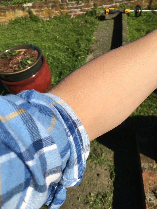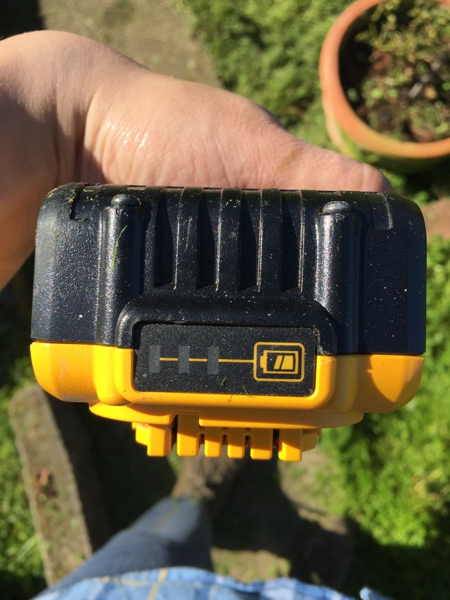 So it started well. Moving pots aside and cutting everything down to size. It’s much easier then the bulky push mower for sure.