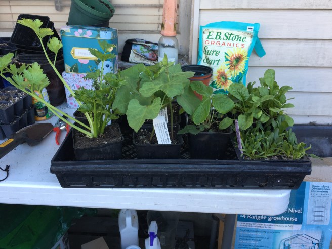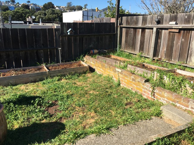 SO. I have 4 full beds empty and the bed the Yerba Buena has claimed for her own. That’s a bed that also has a flowering shungiku which I’m just gonna let go for the buzzy boys to have an early feast.