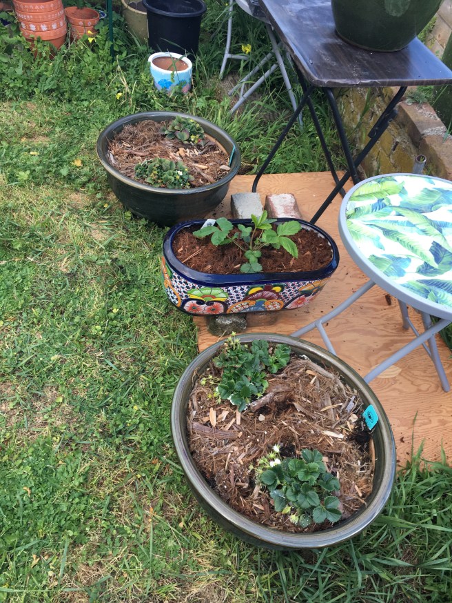 Now that’s a strawberry! My other two bowls of berries- both alpine and quinault- are doing ok- but I thought I’d cluster them together for ease of access.