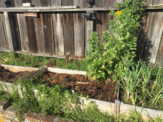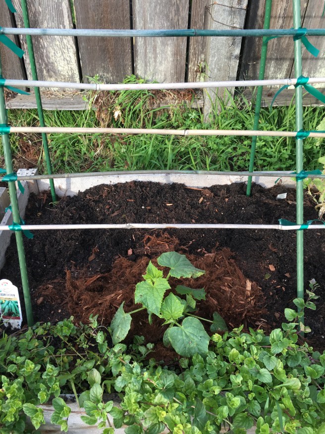 So I really want to put the cukes in the bed with the yerba and the Shungiku.