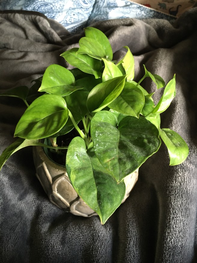 I recently had to do some heroics to de-fungus gnat a snake plant. This buddy is an emerald pothos- who’s very easy to take care of.