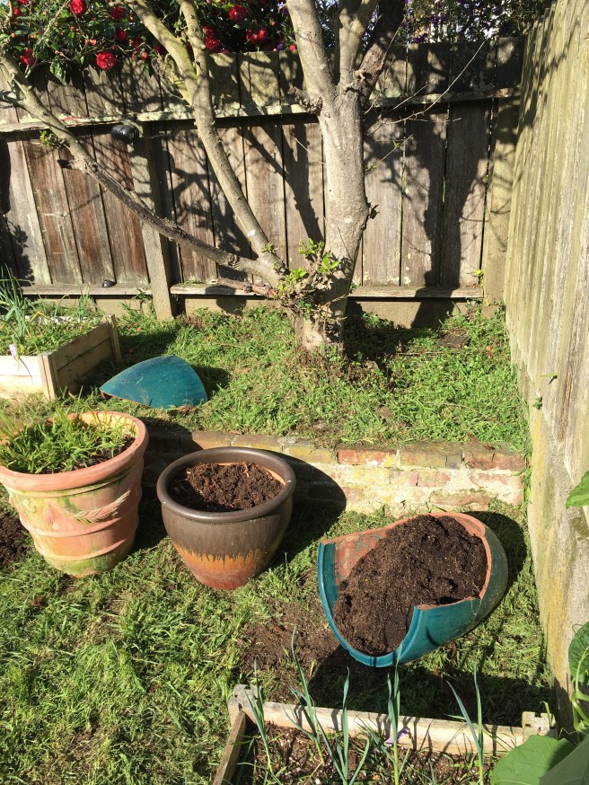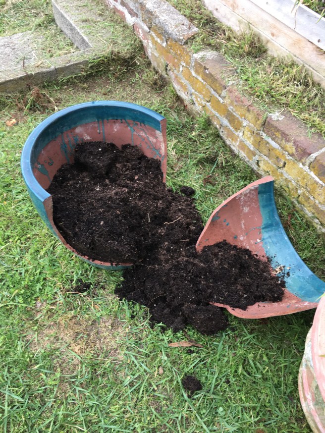 Of course, in moving things to get access to weeds, there were a few casualties…