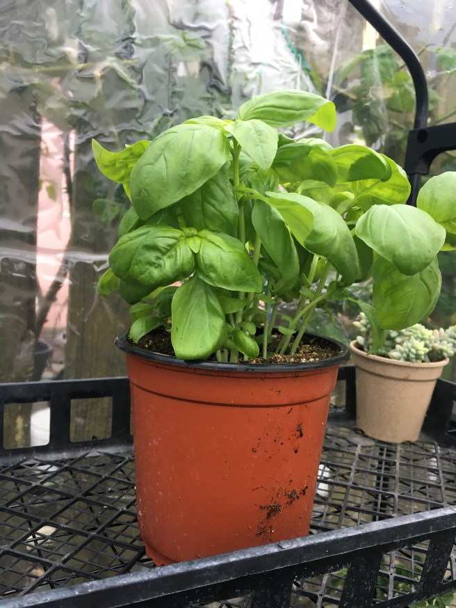 Welcome my new basil plant that I didn’t even want to the hot room I made for my tomatoes. You’ll fit right in.