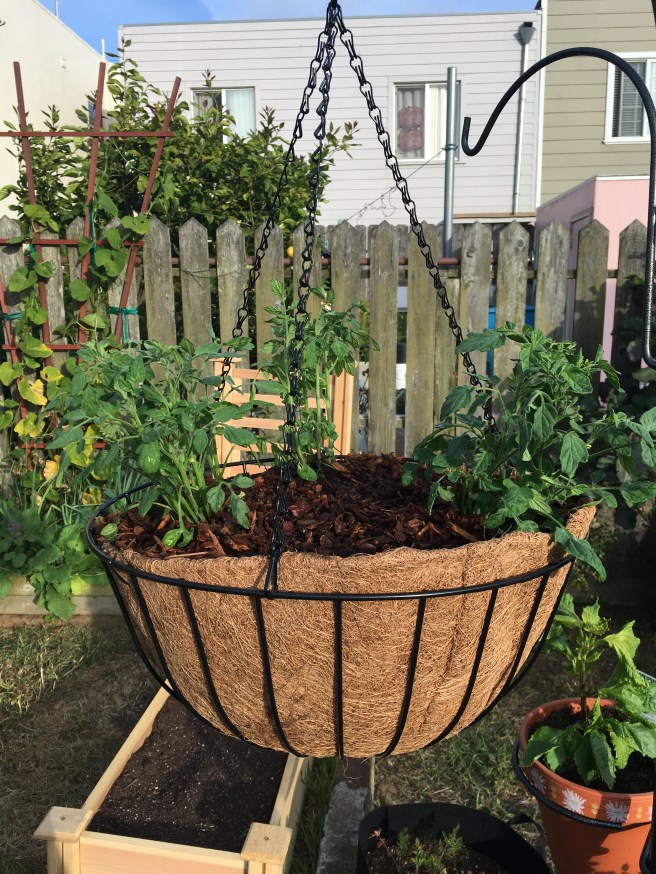 The other hooks will have residents soon enough, I’ll have to figure out what to hang there. The shiso and the thyme needed more sun anyways, and their terra-cotta pots fit perfectly in the rings.