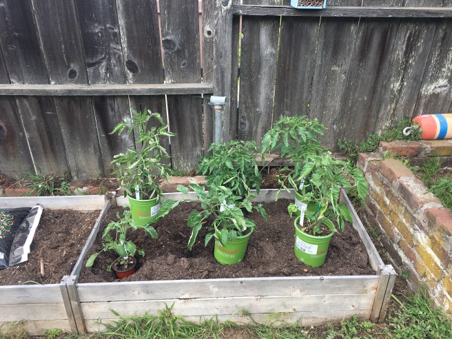 At first I was going to divide the tomatoes up into the two beds but then I thought- meh, lets save space.