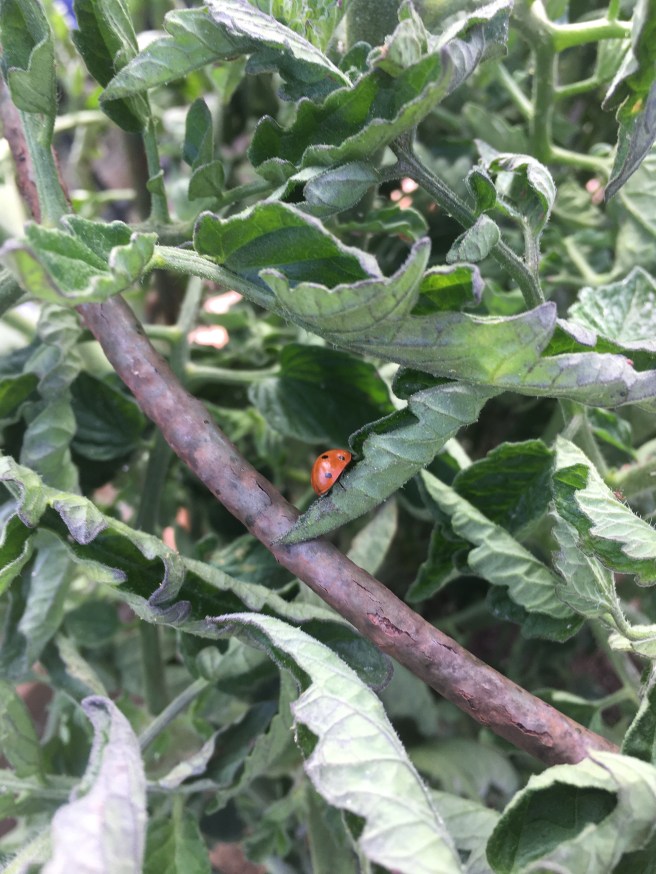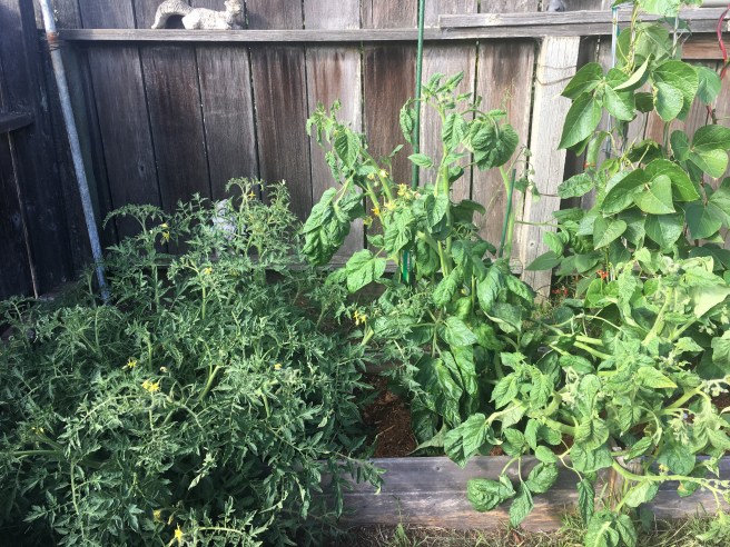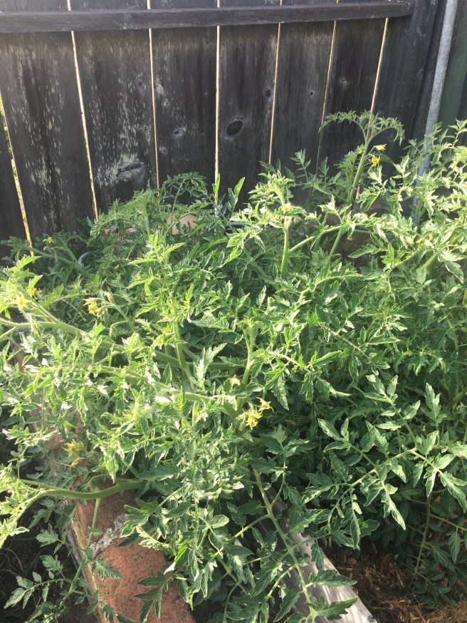 I’m just happy the temperature has finally dropped- I was about to melt, and so were all my non-tomato plants. The good side of at least four days straight of record temps was the spurring of the tomatoes to flower and hopefully fruit.