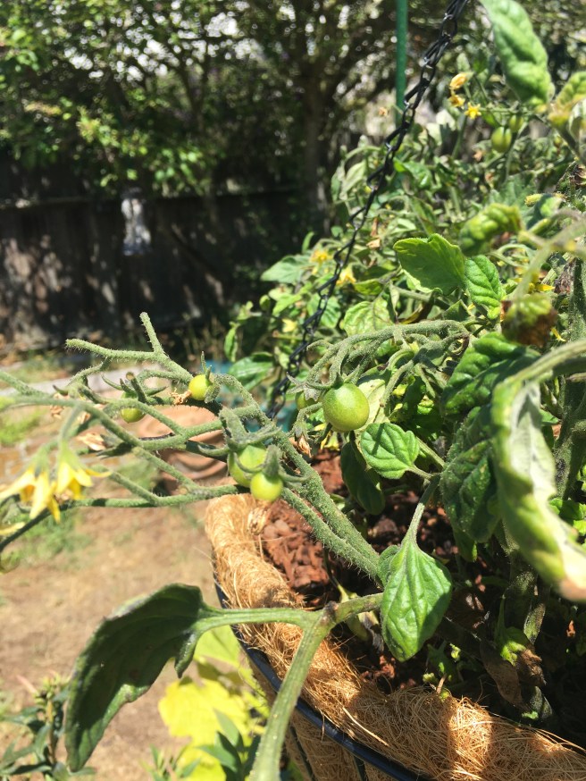 It’s looking like I’m gonna get a ton of cherry tomatoes from this one medium large hanging pot, fungal issues aside.