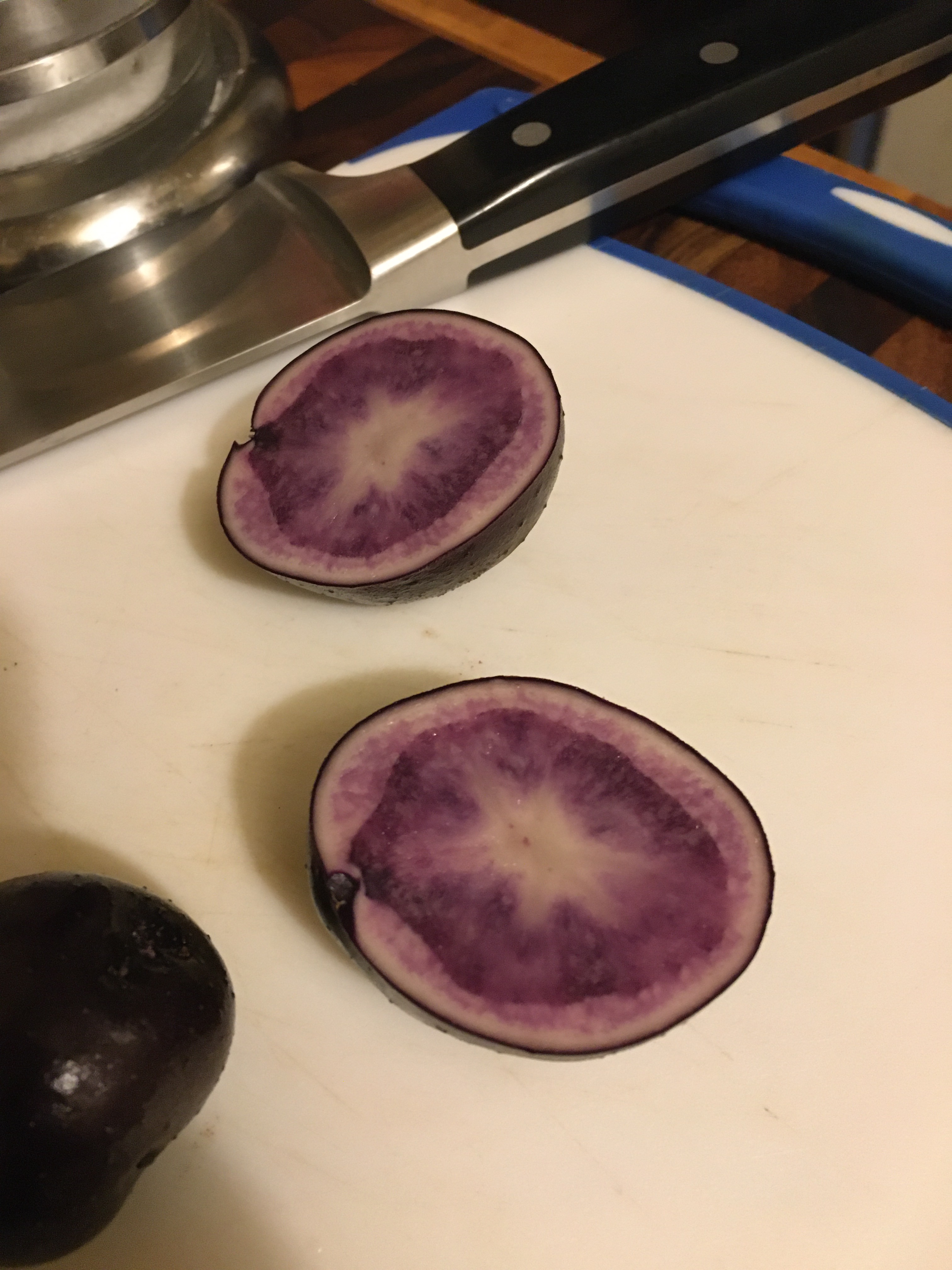 And can I just say- a fresh dug potato is a true thing of beauty. Yes the historical importance of a storage starch filled vegetable is important to the history of several cultures and blah blah blah. Screw storage these babies are getting dug and washed and cut up and cooked and are going right into my stomach AKA the carb void.