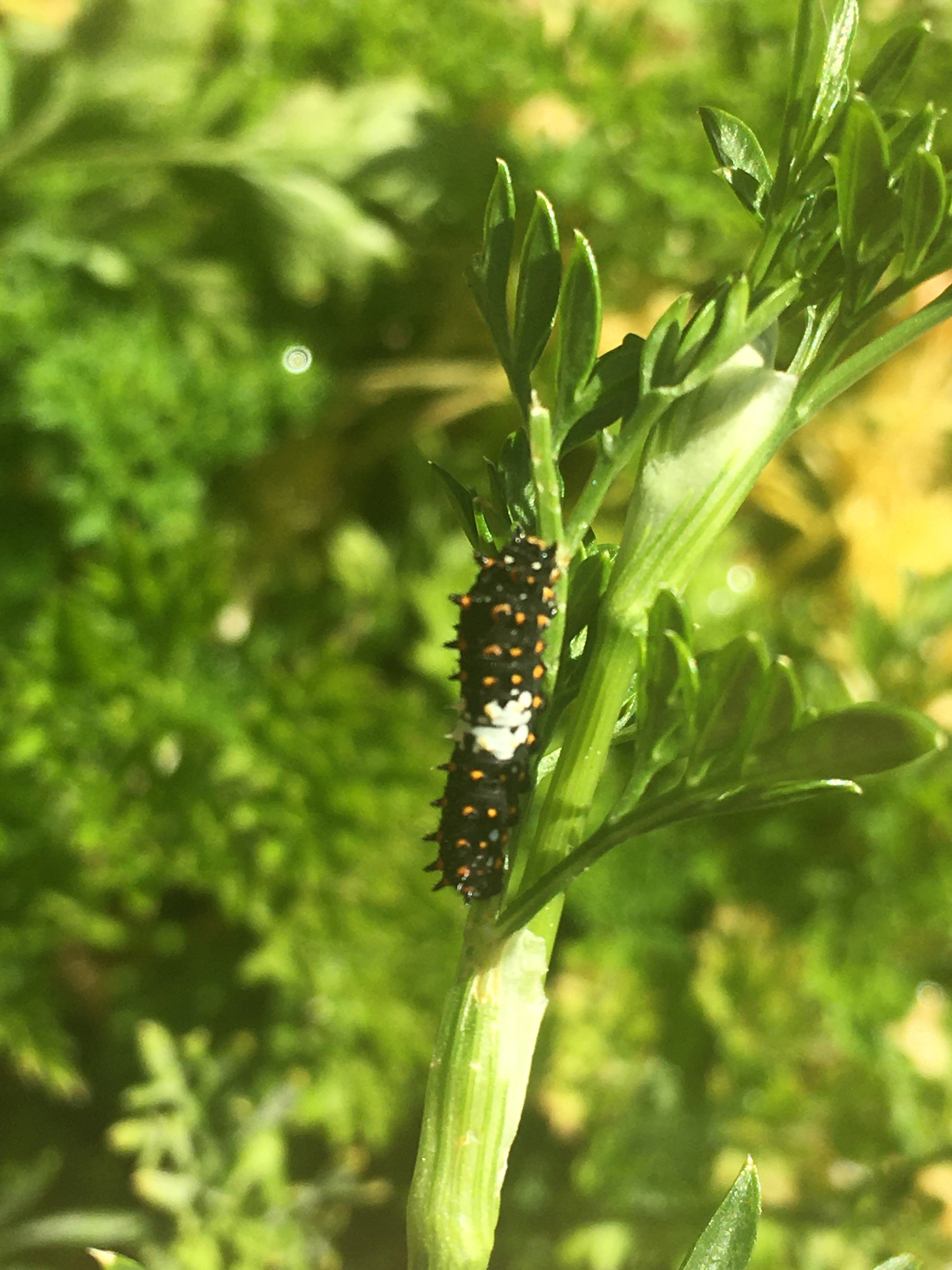 Not sure what kind of caterpillar this is- but as it isn’t a looper I’m allowing it. Lovely swallowtails have been spotted in the garden and while my feelings on caterpillars in general are quite negative I’ve been allowing the parsley to go to seed anyways so I might as well let this fellow enjoy the plant.