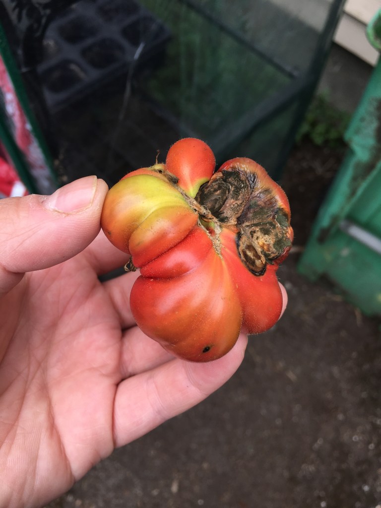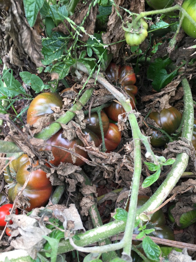 I am in awe- I had no cages and the wind kept blowing the vines over. The weather vacillated between oddly hot and oddly wet- and yet I’m getting multiple beefsteaks in San Francisco!