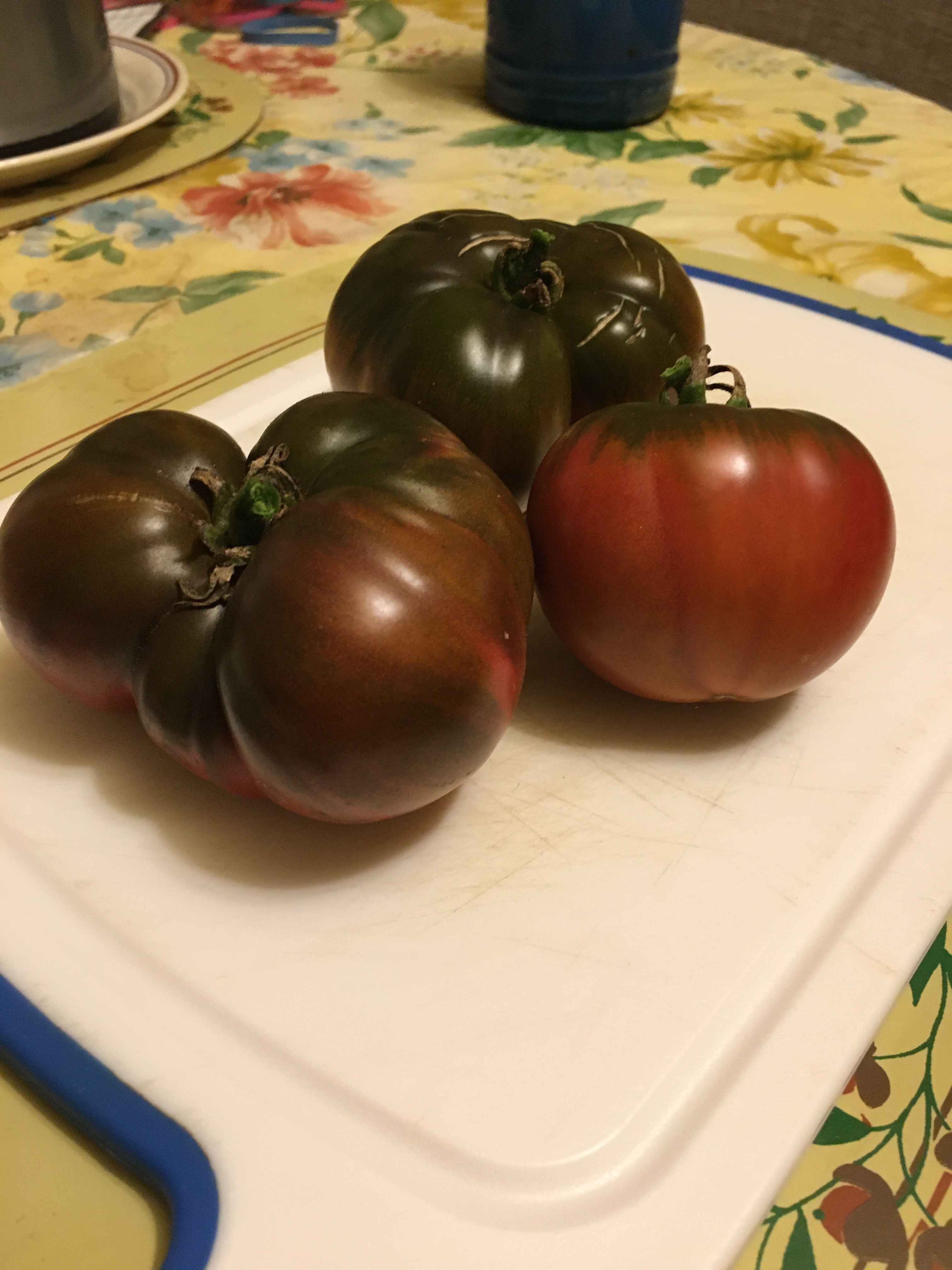 Those dark tomatoes do not ‘look’ appealing to me. I know I should not be so put off by the color, but I am. To me, tomatoes should be red, orange or yellow. Even the Green Zebra looks weird to me.