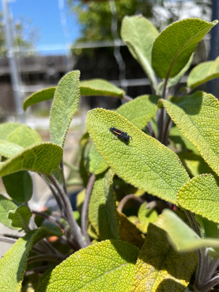 Sage is pretty aphid resistant, in that infestations do happen but generally don’t damage the plant too much. But the larvae laden sage leaves gave me an opportunity to easily move my army.