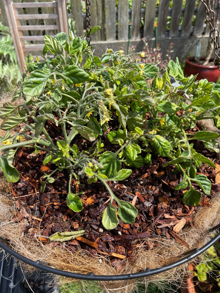 Sometimes plants that don’t look obviously aphidy can also have a small or large infestation. My sage in terracotta that’s right below the hanging tomato basket has been lousy with ladybug larvae- a sign that their food is there too.