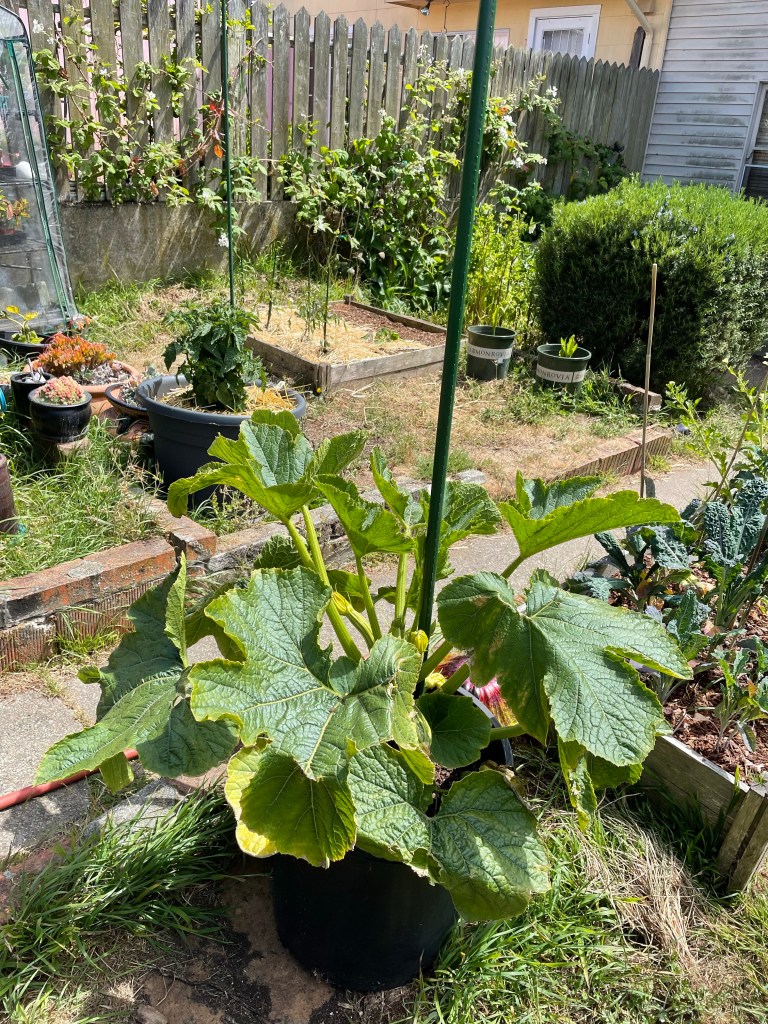 But we’re approaching the zucchini event horizon- when the plant gets mega-unwieldy very quickly and that starts to impact how the plant performs. So I’m going to attempt a zucchini tree.