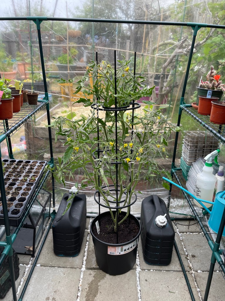 By May my greenhouse tomato had been growing steadily larger and was just starting to put out flowers.