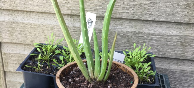 So buddy aloe has been happy as a clam in his nice terra-cotta pot on the workbench, out of the sun and rain. How happy? He's had a couple of babies. Now I got him because he had the beginning of pups, and I wanted to double or triple my fun, but his babies have … Continue reading Buddy Aloe has a baby